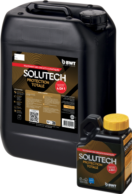 Produit de protection complet contre : boues, tartre, corrosion (incluant aluminium) et algues. Compatible avec tous les types de circuits (haute ou basse températures, chaudières ou pompes à chaleur, tous types de matériaux), le SoluTECH Protection Totale s’utilise pour :