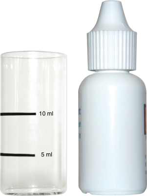 Fonctionnement: Mettre 10mL d'eau dans la cuve, verser les gouttes une par une jusqu'à changement de couleur en les comptant. Calculer ainsi la dureté de l'eau : 1 goutte = 1 degré de dureté.